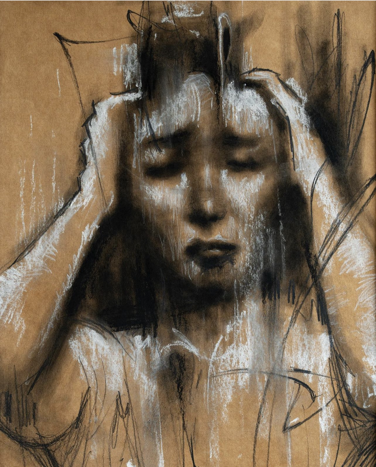 Stress is a feeling of emotional or physical tension which can arise out of anything. The Covid-19 pandemic was stressful for all of us and made us feel drained. The subject in the artwork is represented holding her head to ward off the negative thoughts that assail one’s mind when stressed. However, a big part of adulting is being able to work well under pressure and I am slowly learning to do that.