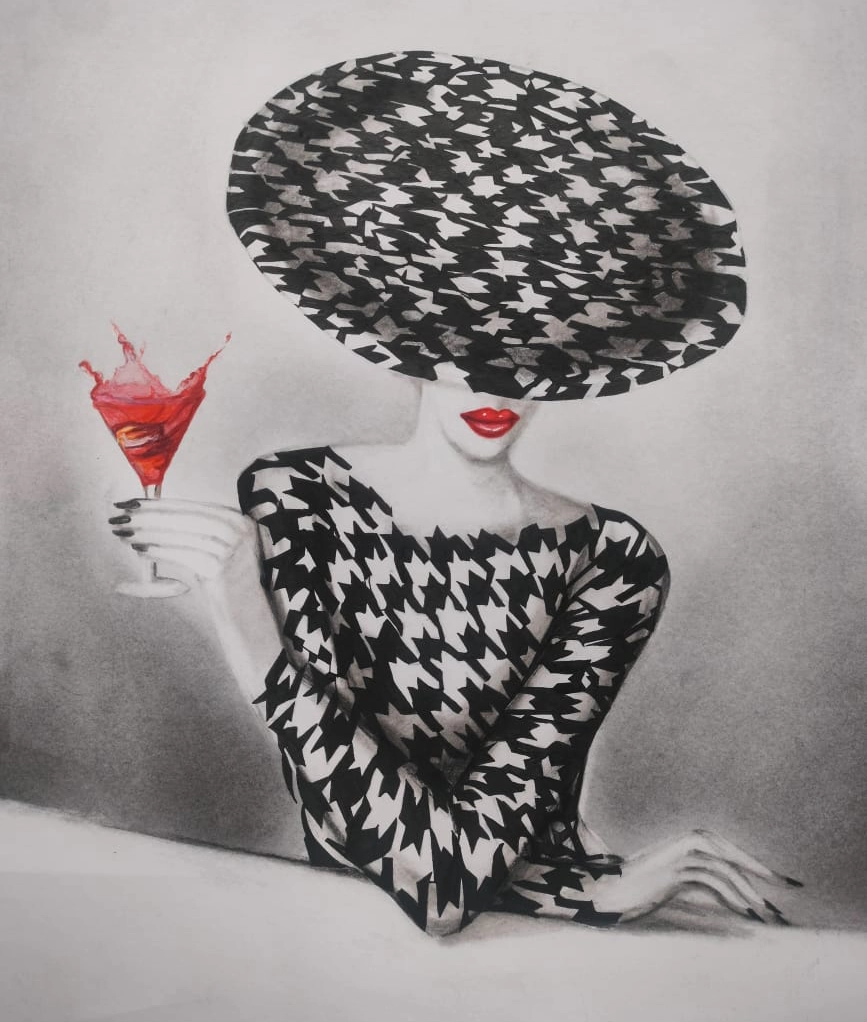 In daily life and occasionally in nature, lines can be observed. The way that a zebra’s stripes accentuate its natural beauty served as inspiration for this. Doodles is a free flow of ideas put in contact with each other to make a whole figure which has been used in this piece